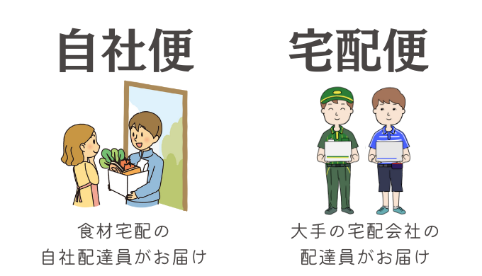 自社便は行っているものの、対象エリアや条件がかなり限られているサービス(Oisix等)は、宅配便のみとして掲載しています。