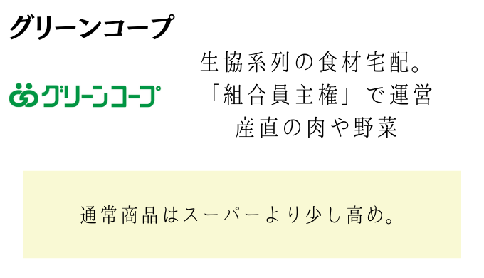 | コープデリ おうちコープ コープきんき等 | パルシステム | 生活クラブ コープ自然派 グリーンコープ等 |