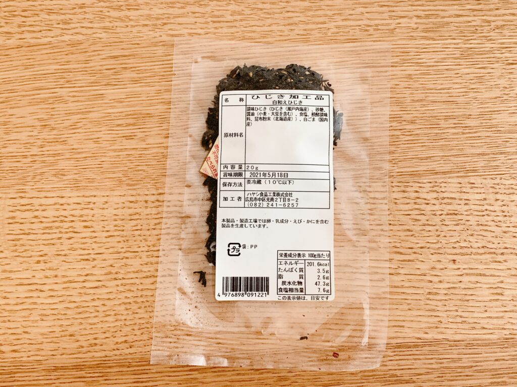 国産ひじきを使用し、味付けは醤油・砂糖・食塩・昆布などを使用。化学調味料は使われていません。