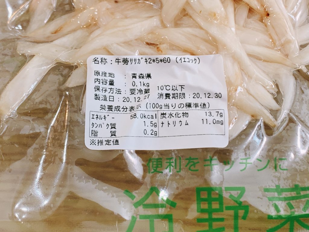 ごぼうも洗って、皮をむいて、切るのが面倒な野菜なので、イエコックで買うと便利。