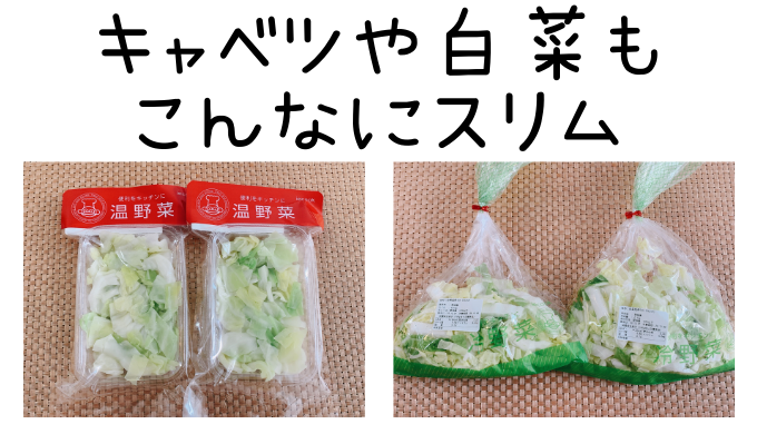 使い切れない&冷蔵庫を圧迫する&ゴミが出やすい野菜上位のキャベツが、こんなにスリムなパックで届きます。