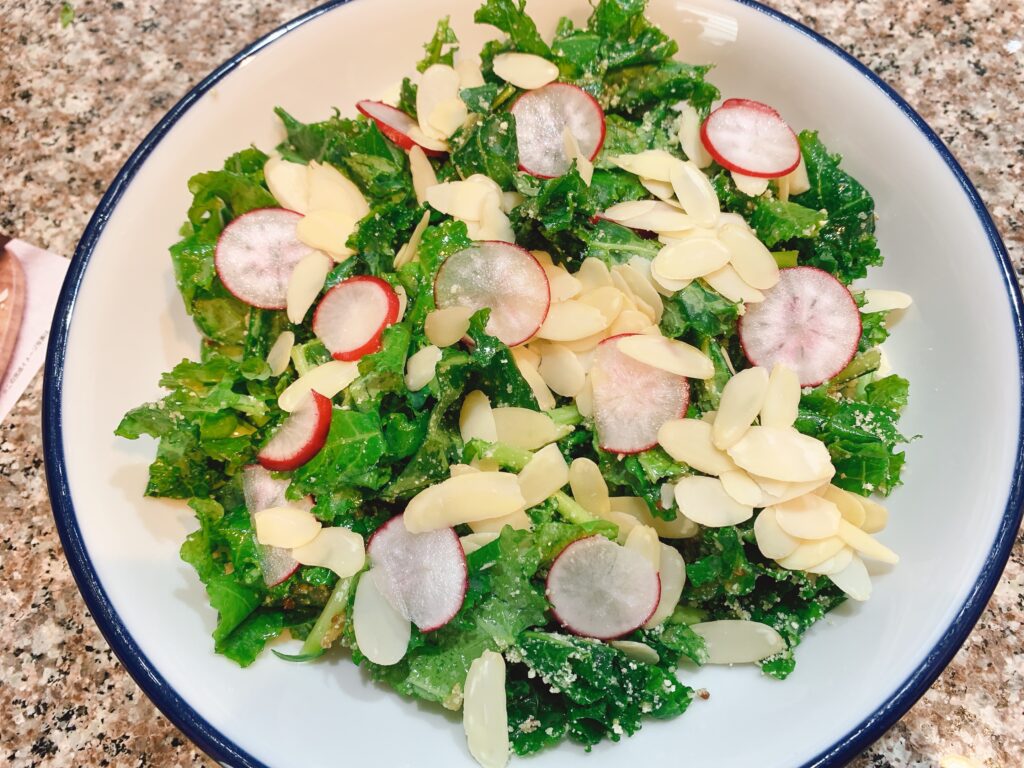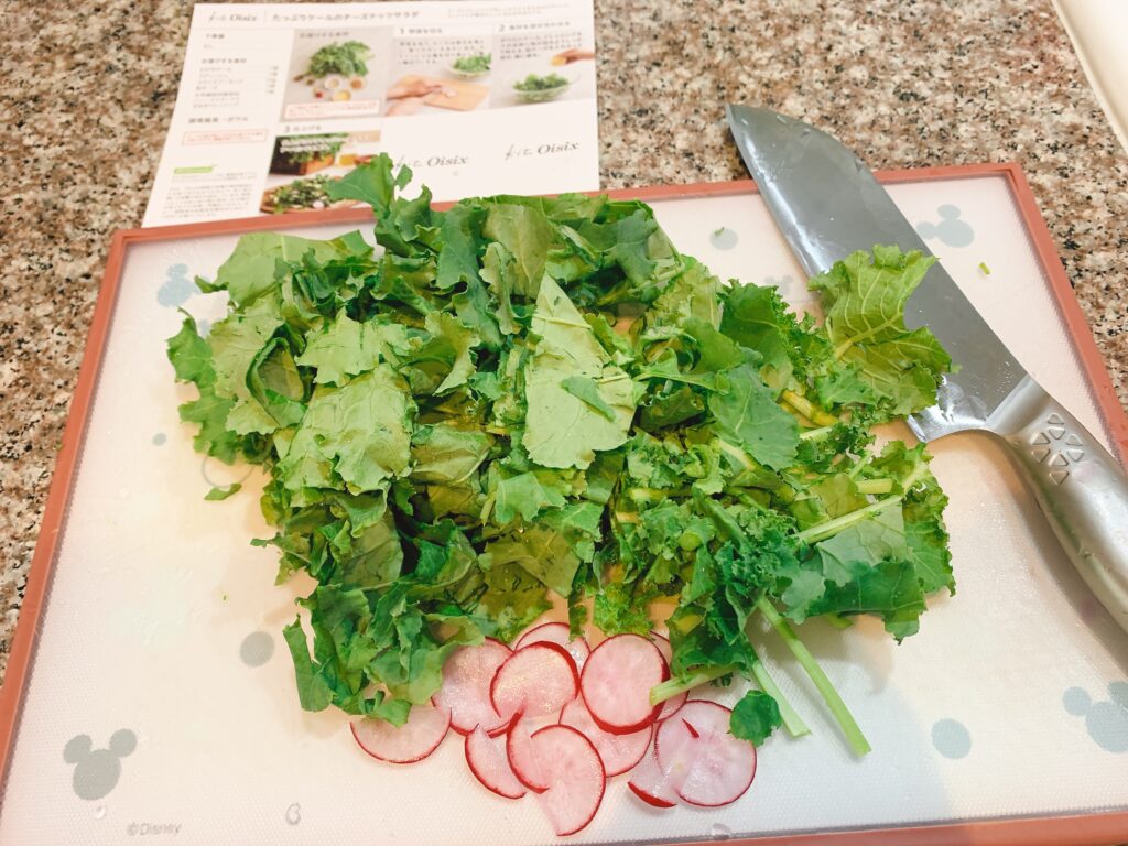 今回作ったのはたっぷりケールのチーズナッツサラダ。