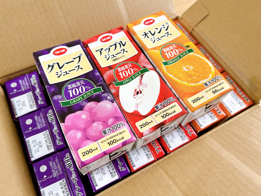 例えばコープブランドのこちらのアイスは8本入りで税込214円(1本あたり約27円)、ジュースは18本入りで税込950円(1本あたり約53円)なので、かなりお買い得ですね。