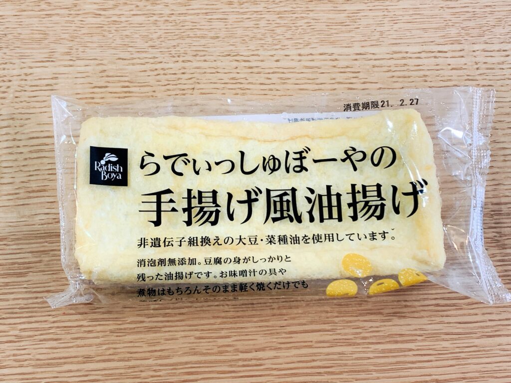国産の大豆とにがり、非遺伝子組み換えの菜種の一番搾り油で作った油揚げです。