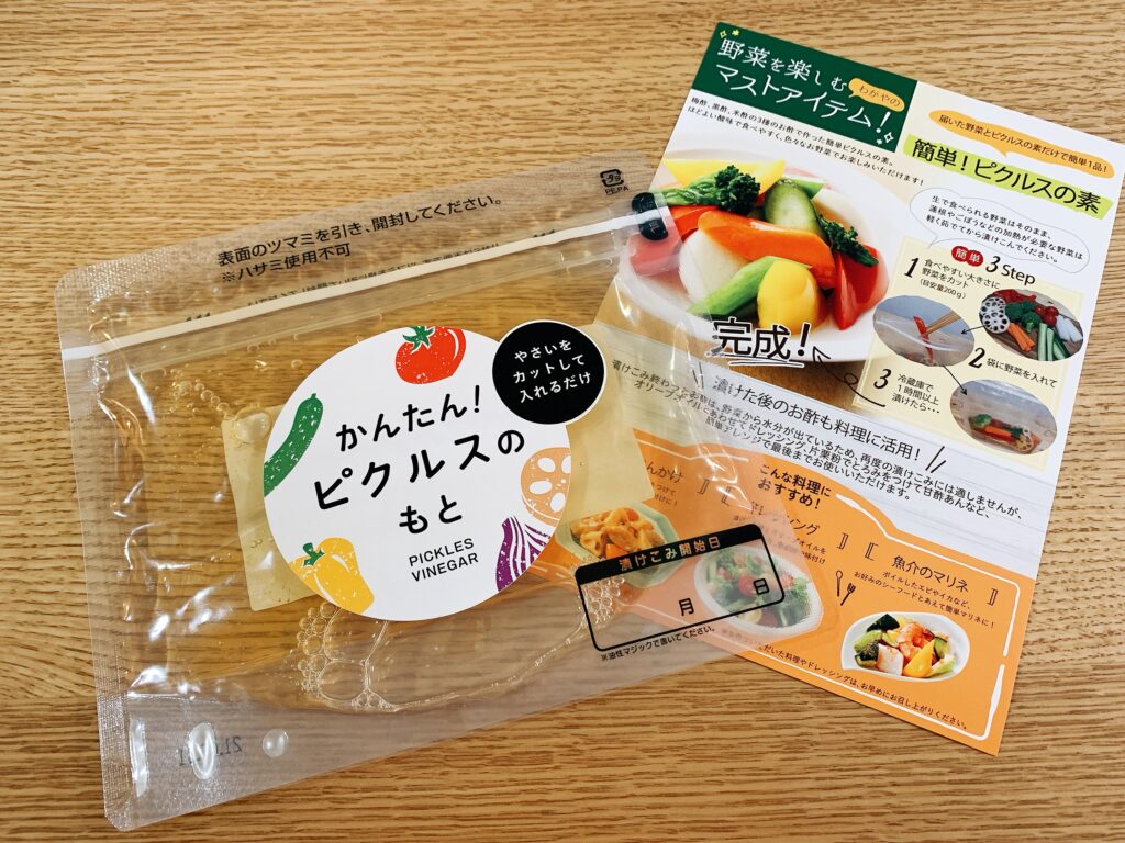 昔のお試しセットに入っていた「有機ピクルスの素」はお試しセット限定商品らしいんですが、この「かんたん!ピクルスのもと」には限定の文字がありませんでした。