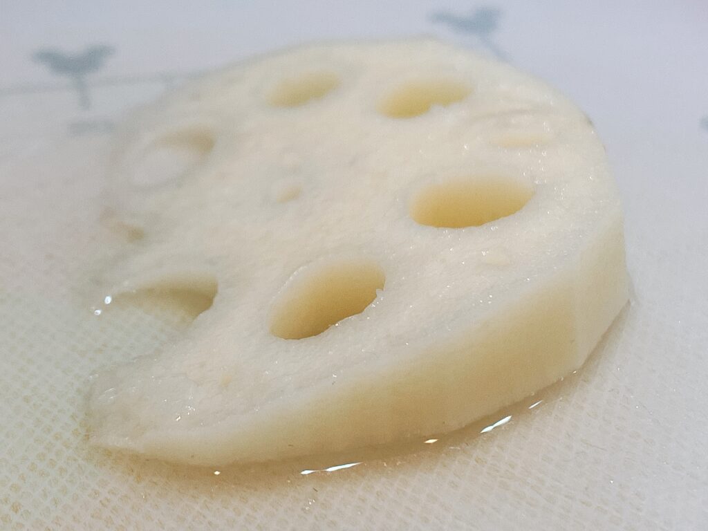 生で食べられない野菜(れんこん)は、先に軽く茹でておきます。