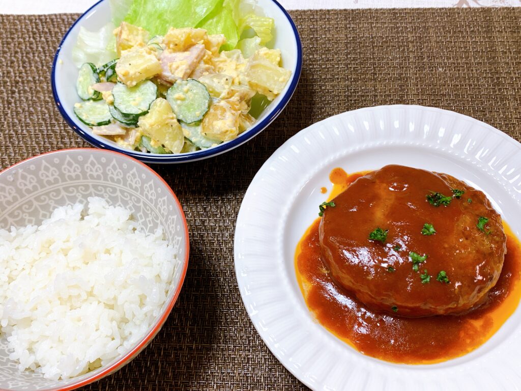 この日のハンバーグ、すごく美味しくて、家族から大好評でした。(湯煎しかしてないけどね。)